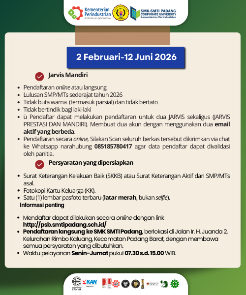 INFORMASI SPMB SMK SMTI PADANG TAHUN 2026